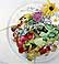 I think it appropriate that the images in this series of paintings are composed in the perfect circle of the container, the edges of the table underneath and the shadows leading the eye toward the rhythmic elements of the contents. These elements represent, visually, the essence of us, as individuals, striving to be part of the cyclical order of the universe.